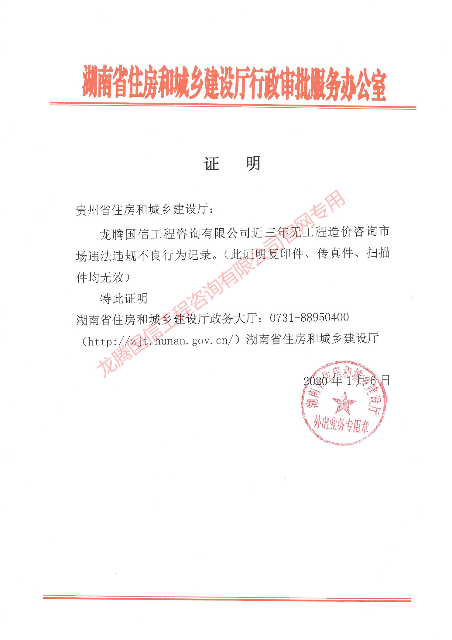 住房和城鄉(xiāng)建設(shè)廳出省信譽(yù)證明