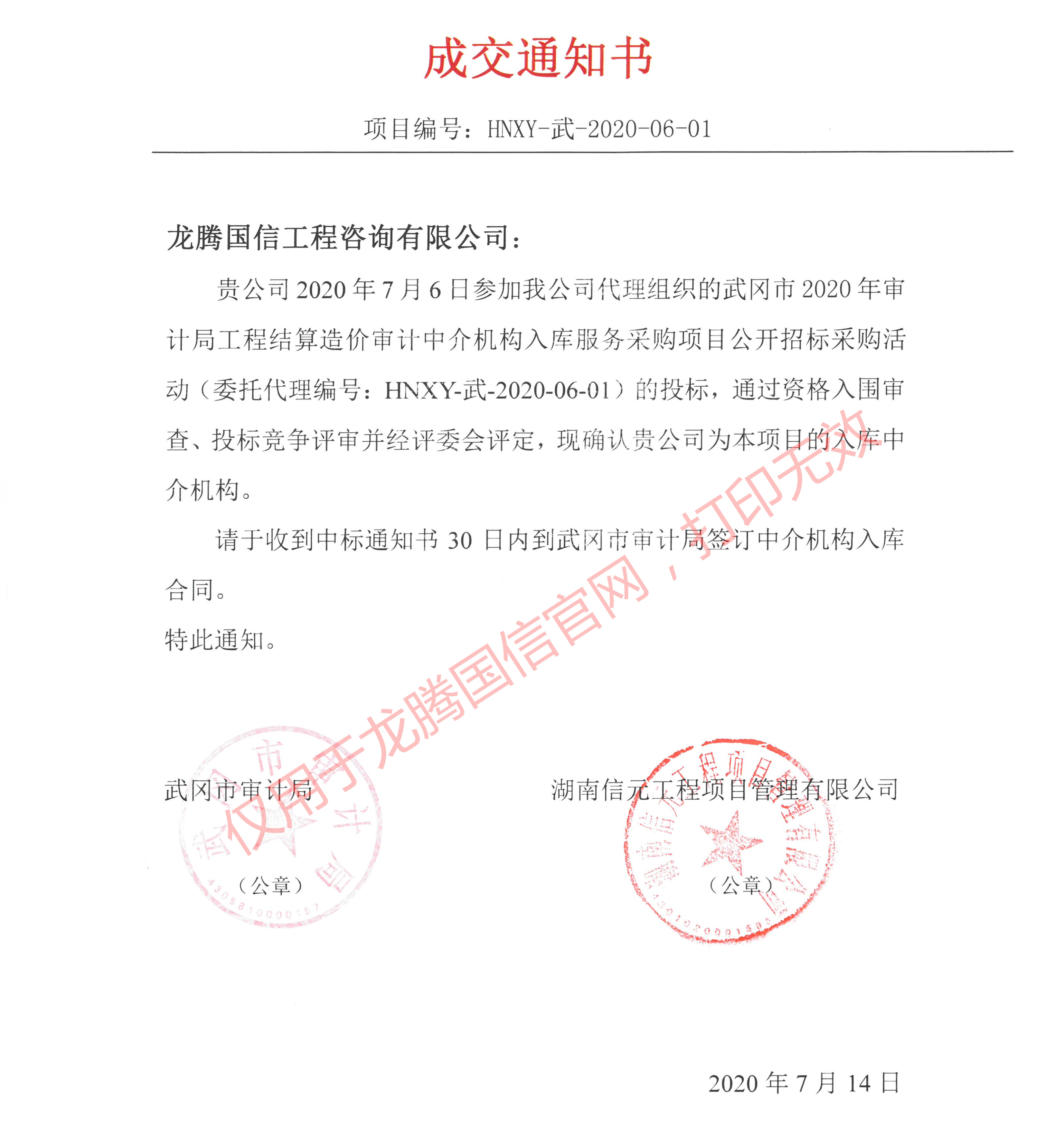 恭賀本公司中標武岡市審計局工程結(jié)算造價審計中介機構(gòu)庫